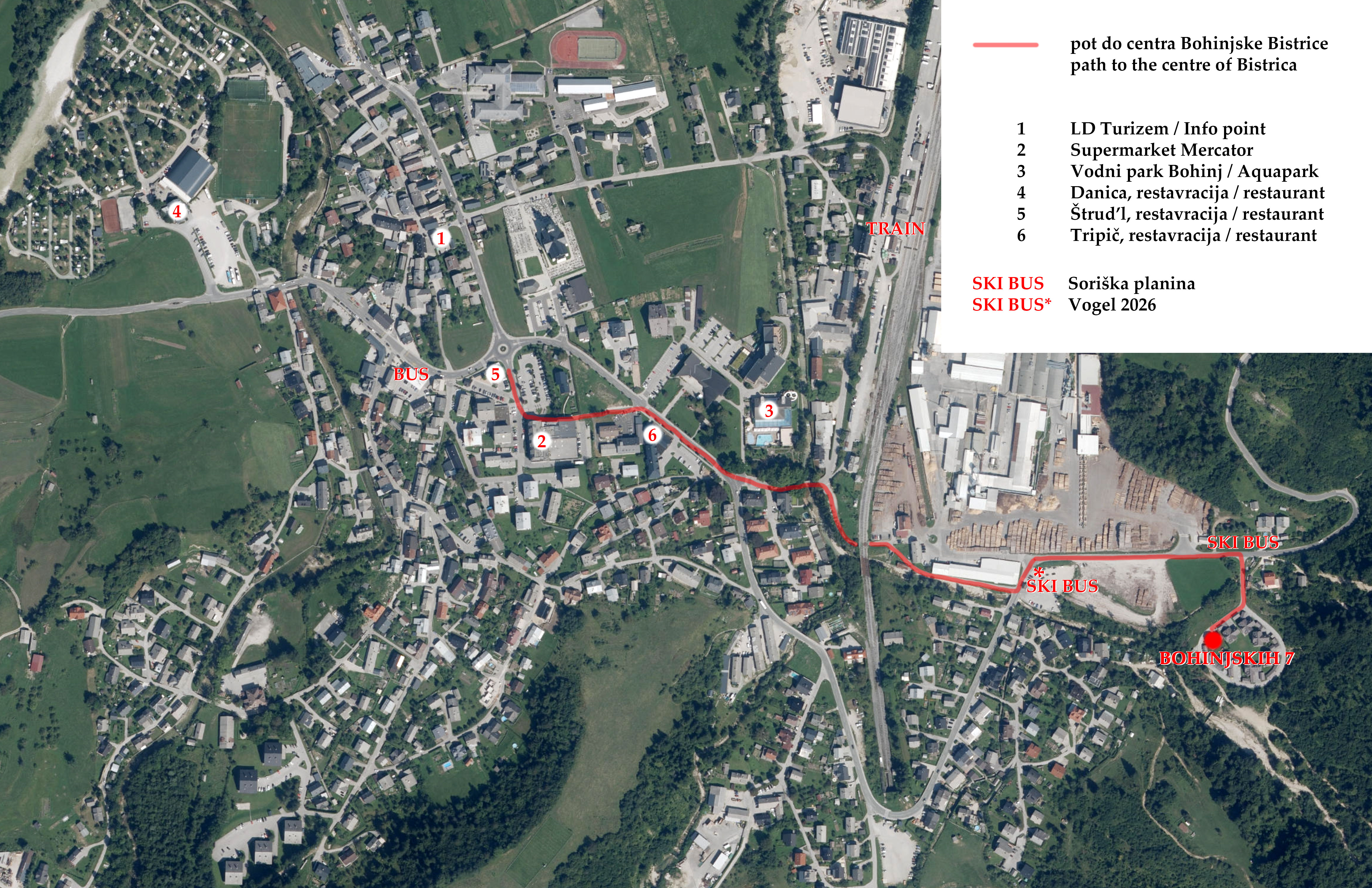 - Free ski-bus transfer (more info and timetable) is available to Ski Resort Vogel and to Ski Resort Soriska planina (this service is valid from the start till the end of ski season) by submitting a Winter Julian Alps: Bohinj Card which can be obtained at the LD Tourism Info Point Bohinjska Bistrica, we can also provide it for you (let us know in advance).